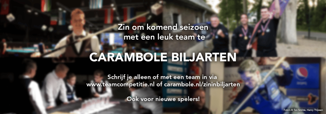 Tot zover alle info over de teamcompetities van Carambole. Heel veel succes!